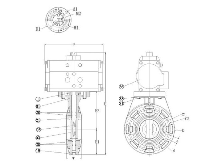 | SIZE | d | C1 | C2 | H | H1 | H2 | D | D1 | M1 | M2 | d1 | d2 | s | w | P | n-e |