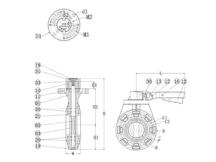 | SIZE | d | C1 | C2 | H | H1 | H2 | H3 | D | D1 | M1 | M2 | d1 | d2 | s | w | L | n-e |