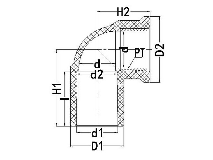 | SIZE | d1 | d2 | I | D1 | D2 | d | H1 | H2 | PT(牙/寸) |